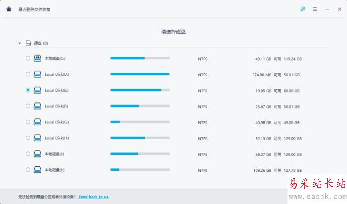 勾選你存有丟失文件的硬盤(C, D, E, F, G,H盤),點擊“開始”按鈕,去掃描搜索你丟失的文件吧。