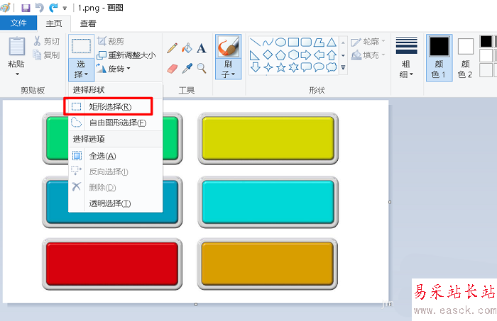 技巧三:刪除圖片中的一部分內容,點擊選擇,再點擊矩形選擇,然后在圖片上進行選區,在按一下刪除鍵Delete,選區內的內容就會被刪除。