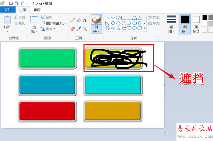 技巧二:為圖片打上馬賽克,選擇刷子工具,然后在選擇一種顏色,接著在圖片上涂抹,就能將不想讓別人看到的內容涂掉。