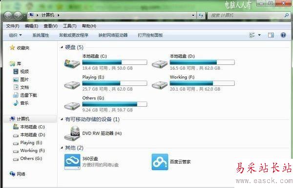 6、然后再打開計算機文件夾,就沒有金山云盤的圖標殘余了。