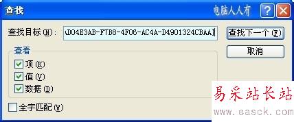 4、然后在搜索框中輸入關鍵詞:{AD04E3AB-F7B8-4F06-AC4A-D4901324CBAA}→查找下一個