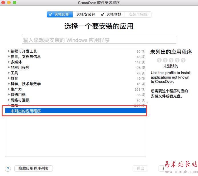 2、因為安裝的應用不在這個系統(tǒng)兼容軟件中,所以我們點擊“查看所有應用程序”,然后點擊選擇“未列出的應用程序”;