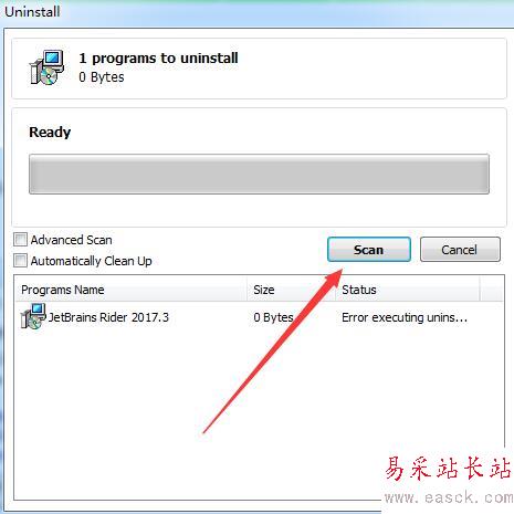 7、完成軟件的卸載之后在下圖所示的界面中會出現“scan”按鈕,點擊它就可以開始掃描該軟件在電腦中遺留的文件