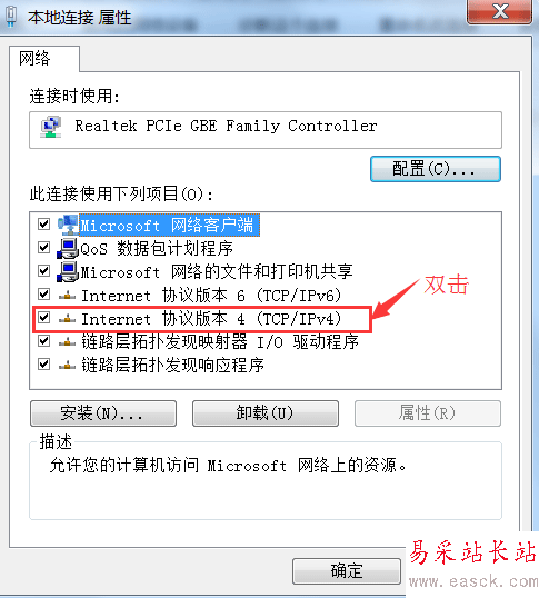 2、如圖,進入更改適配器設置,雙擊Internet協議版本4(TCP/IPv4);