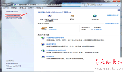 1、在電腦桌面打開網絡圖標——右擊屬性,如圖點擊更改適配器設置;