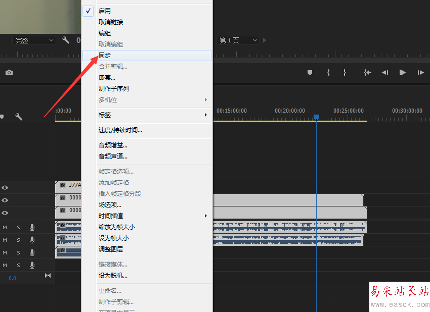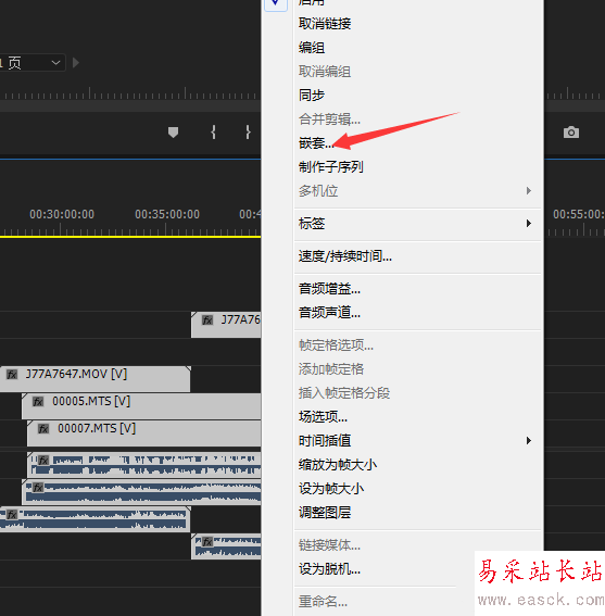 5、同步后,右擊選擇嵌套,嵌套之后就變成一條軌道上面的素材,