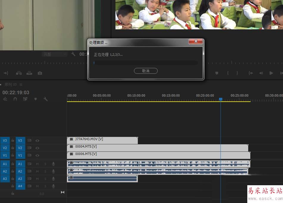 4、如圖就在同步了,同步就是拍攝中間部分斷的,它都能給你同步到一起,
