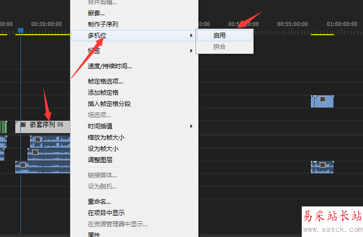 6、然后在右擊素材,選擇多機位選擇啟用,
