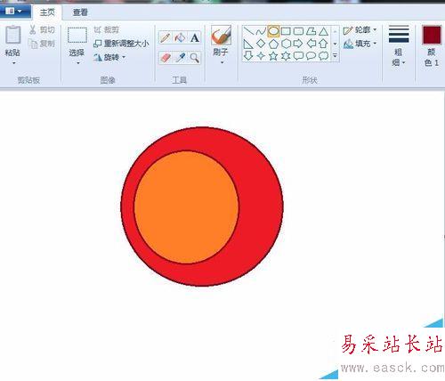 3、把填充顏色改變一下,然后再用橢圓工具在內(nèi)部繪制一個較小的橢圓,為了畫出一定的立體透視感覺,在畫第二個橢圓的時候離右邊的邊框稍微遠點。