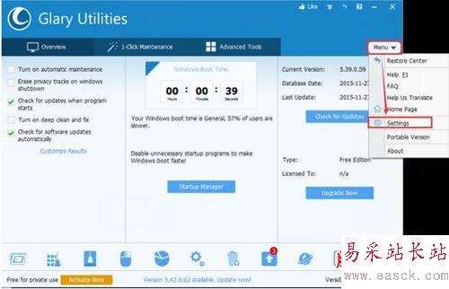 首先將下載安裝好的Glary Utilities雙擊打開,主界面如下