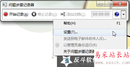 運行問題步驟記錄器后首先要設置一下,點擊右邊的下拉菜單,進入設置窗口。