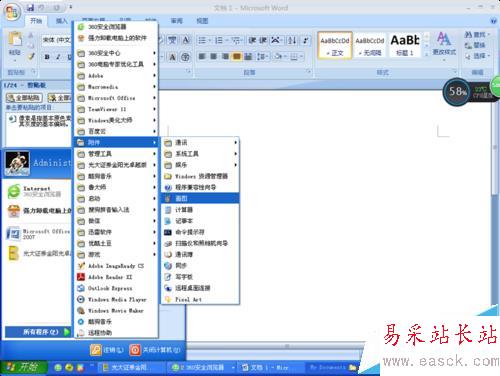 1、在桌面上點開“開始”→“附件”→“畫圖”,點擊“畫圖”。