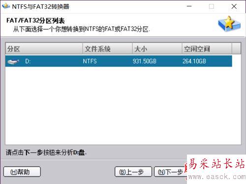 在下一個界面中,選擇具體要執行格式轉換的磁盤分區,此時如果文件很多,會有一個掃描過程。