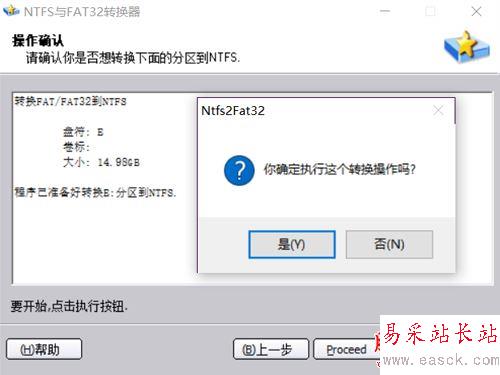 確認無誤后,點擊“Proceed”執行。這時候要特別留意,如果你選擇了磁盤,這是最后一次“后悔”的機會,選擇“是”進行轉換。