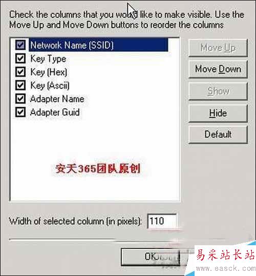 在“View”菜單中選擇“Choose Columns”,在彈出的窗口中定制顯示方式,例如僅僅顯示無線網絡名稱和無線密碼,如圖2所示,只要選擇“Network Name(SSID)”和“ Key(Ascii)”這兩個選項即可。