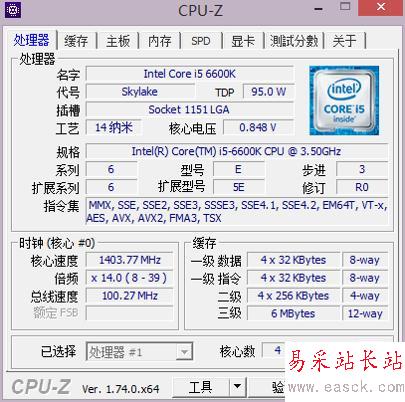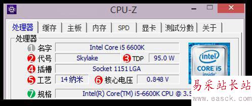 圖為Intel六代I5-6600K的CPU-Z檢測結(jié)果