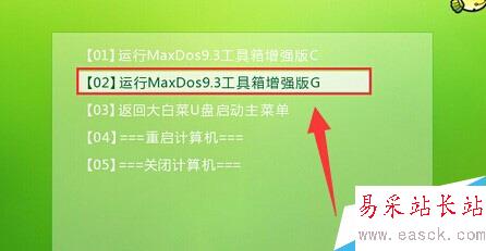 1.將制作好的大白菜u盤啟動盤刺進(jìn)usb接口,重啟電腦進(jìn)入到大白菜主菜單界面,挑選“【07】運(yùn)轉(zhuǎn)MaxDos工具箱增強(qiáng)版菜單”回車承認(rèn)。如下圖所示