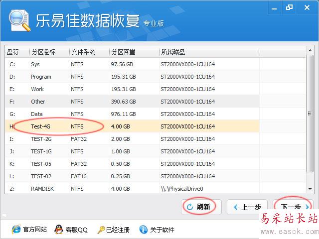 如果您要恢復的是移動硬盤、U盤、內存卡等移動存儲設備的分區,且分區列表里沒有您需要恢復文件的分區,請重新拔插您的移動存儲設備,然后點擊“刷新”按鈕。