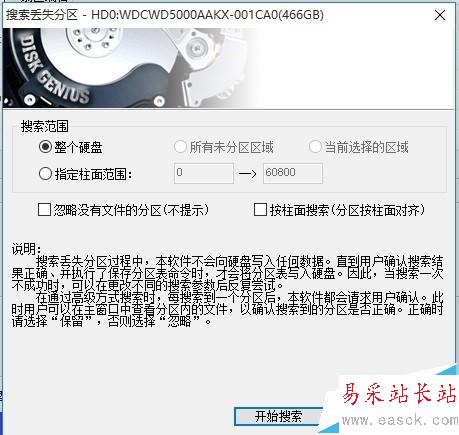 DiskGenius打開提示“終止位置參數溢出”解決辦法,這種問題網上的方法主要是一種,慢慢重新搜索,時間較多。這里提供一種改進的方法,可以快速解決此問題。