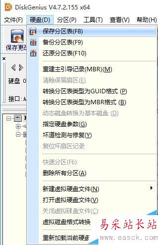 5、點完了,就提示完成,點菜單欄“硬盤(D)”保存分區表就OK了。然后就不會再有類似提示了。