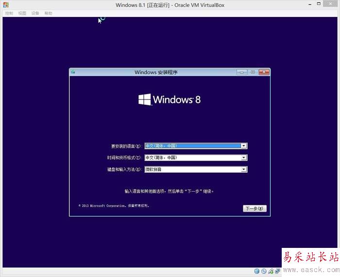 重新打開Virtualbox,啟動Windows 8.1的虛擬機,已經可以正常安裝了。