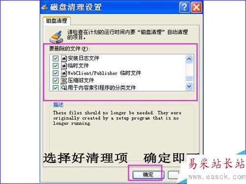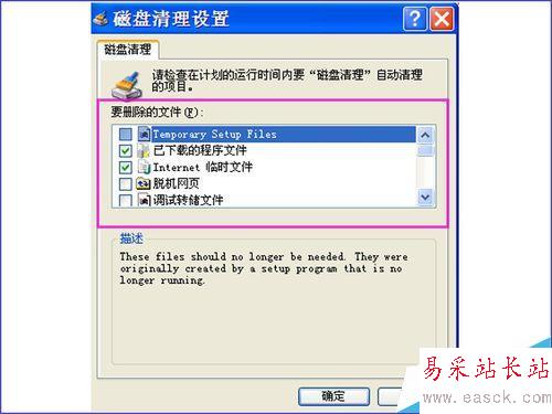 4、開始運行輸入 cleanmgr /sageset:99 確定后,彈出”磁盤清理設置“,可以選擇要清理的項目