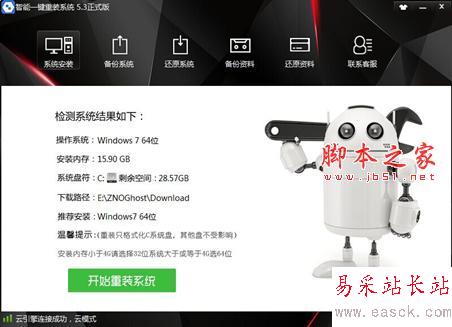 智能一鍵重裝系統(tǒng)是一款免費(fèi)的系統(tǒng)在線重裝工具,這款軟件可以讓你無需U盤與光驅(qū),只要有網(wǎng)就能一鍵重裝系統(tǒng),軟件使用非常簡單,只要按照軟件提示步驟操作即可,在重裝過程中需要關(guān)閉屏幕保護(hù)程序以免長時間不操作電腦導(dǎo)致自動休眠造成斷網(wǎng)。