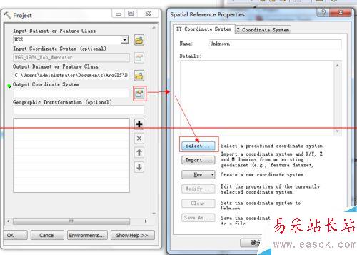 3、在打開的Project窗口中,選擇輸出的空間坐標(biāo)系統(tǒng),然后,點擊“Select”,如下圖所示: