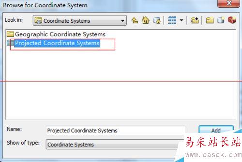 4、選擇“Projected Coordinate System”,如下圖所示: