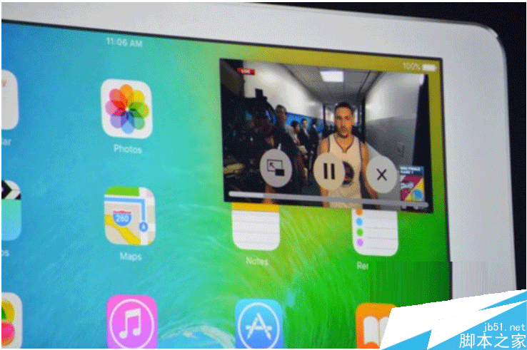 另外,iPad還支持“畫中畫”功能,可以將正在播放的視頻縮放到一角,然后利用屏幕其它空間處理其他的工作。類似于SAMSUNG此前推出的視頻多屏播放功能。