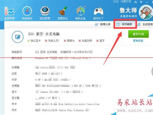 5、如果想把你的電腦硬件信息分享給你的好友,我們可以點擊右側的保存截圖。