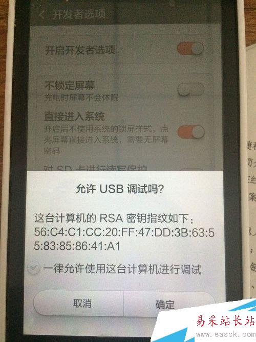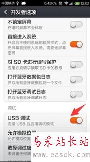 2:打開手機(jī)-設(shè)置-開發(fā)者選項-USB調(diào)試,把USB調(diào)試調(diào)為打開狀態(tài)。