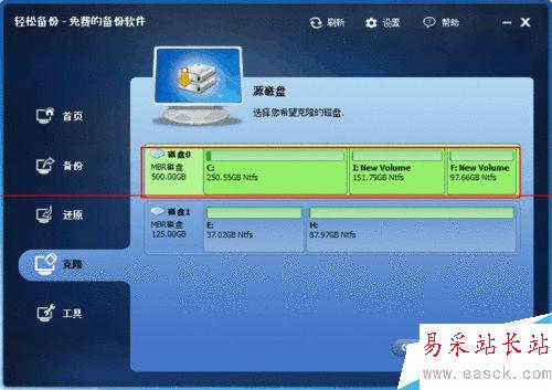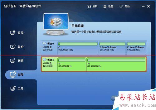 第一步:首先在“克隆”欄下選擇“磁盤克隆”。