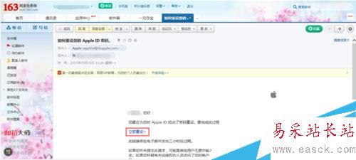 2登陸郵箱找到該郵件,在郵件正文內可以看到【立即重設】的超鏈接按鈕,如下圖所示。