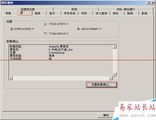 2、打開屬性窗口中選擇【源】,單擊設置數據源按鈕,重新設置數據源;