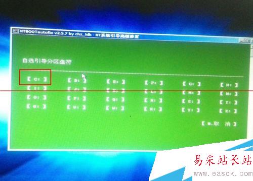4、雙擊上圖中的Windows引導修復圖標后會打開如下的Dos界面,在界面中輸入原來系統所在磁盤的位置。我的Win7是安裝在C盤的,所以輸入C。