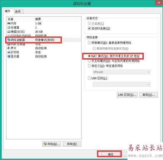 4.如果你沒有設置過,默認的是NAT,點擊確定即可。