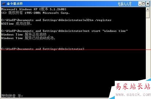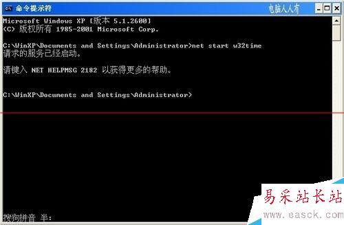 7、或者使用此命令也能啟動Windows Time(時間服務): net start w32time (按回車鍵執行)