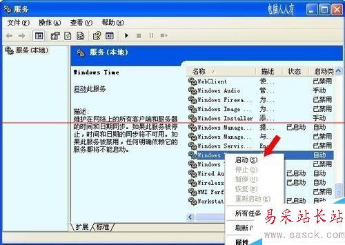 2、找到Windows Time→啟動(啟動類型已經處于自動狀態)