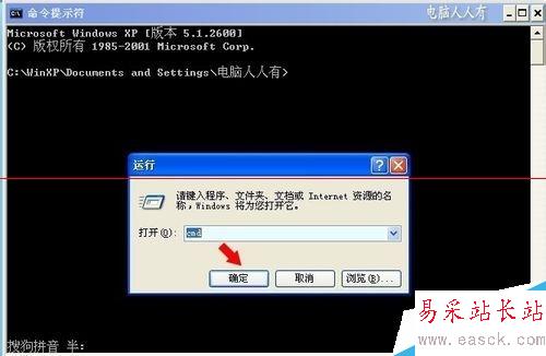 4、開始→運行→輸入:CMD 點擊確定(或按回車鍵),打開命令提示符窗口。