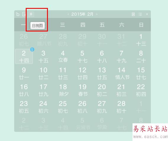 3、如果大家不喜歡這個形式的日歷我們點擊“月”可以顯示月視圖它就成這個樣子了,點擊“日”視圖它也可以變回來