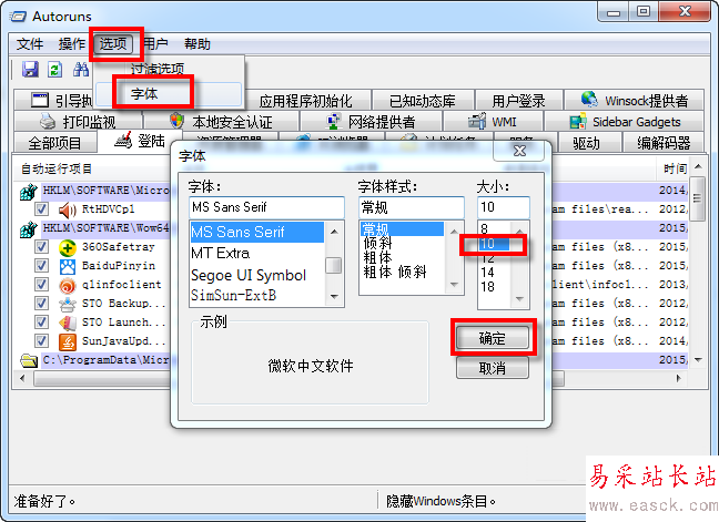 工欲善其事,必先利其器。由于軟件首次使用時(shí),默認(rèn)字體是8號(hào)字,比較小,對(duì)于近視眼的同志來講簡(jiǎn)直是折磨。按照下圖步驟,在彈出的對(duì)話框中把字體調(diào)到10號(hào)字以上吧(可惜的是菜單和標(biāo)簽的中文字體大小不能更改,湊活用吧):