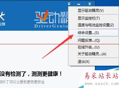 2、安裝并運行“驅動精靈”程序,在其程序主界面中點擊右上角的“設置“下拉列表,從中選擇“綜合設置”項。