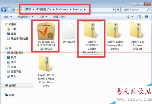 5、待網卡驅動備份完成后,建議進入網卡驅動備份目錄,將“驅動精靈”安裝程序拷貝到此目錄。以方便在安裝系統完成后,重新安裝“驅動精靈”來還原網卡驅動。