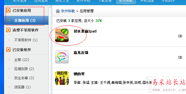 進入寶庫里后能夠看到自己裝的所有軟件和應用,也可以直接卸載