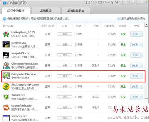 2、下載之后,會自動打開任務(wù)管理器,找到運行中的程序內(nèi)找到魯大師核心服務(wù),并點擊關(guān)閉。