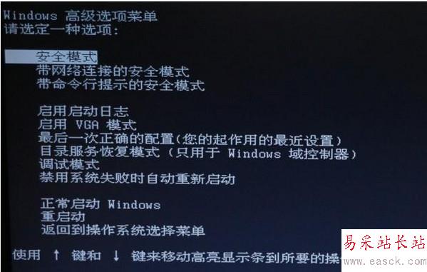 第一步:重啟電腦按F8進(jìn)入安全模式: