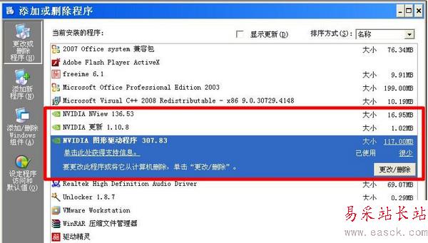 第二步:在安全模式的控制面板添加刪除中把顯卡驅(qū)動(dòng)刪除干凈: