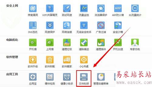 3、打開后,可以看到工具列表。點擊“應用工具”里面的“文件粉碎”,下載插件(很快的)。