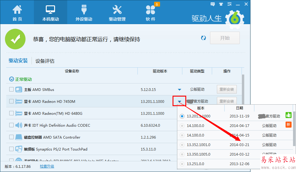 打開本機驅(qū)動,已經(jīng)一一羅列好各項驅(qū)動信息,點擊驅(qū)動版本下方的倒三角按鈕,官方驅(qū)動、公版驅(qū)動、兼容驅(qū)動等常見驅(qū)動版本一目了然。如果不想一項一項更新的話,可以點擊一鍵更新,驅(qū)動人生已經(jīng)為您推薦了最佳的驅(qū)動程序,整個下載安裝,整個安裝過程方便快捷,不用您一一手動安裝。目前市面主流的臺式或筆記本全型號品牌驅(qū)動都能精確查找到,并且還定時升級,不斷加入對最新型號驅(qū)動的支持。